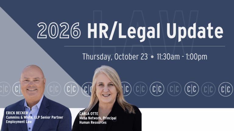 Church & Casualty Insurance Agency hosted its annual HR/Legal Update with Employment Law Attorney Erick Becker and Human Resources Professional/Co-Founder of Mesa Network Carla Otte.